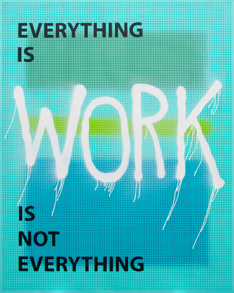 Nakon dobre i duge pauze, kada se vratila želja za slikanjem, to su bile teme koje sam želeo da obradim. Krenulo je od Help, Good Lord, Sympathetic Overdrive, pa preko Gonna Work Myself to Death, Can’t Stop the Traffic in My Mind, a nastavilo se sa Everything Is Work Is Not Everything, My Organs Scream Slow Down Man i drugo. Sadržaj je bio tu, pa je trebalo razviti i neku formu koja će da je nosi. Pošto je komunikativnost slika meni dosta važna, pružio sam ruku prema formalnim strategijama street arta i grafičkog dizajna, pa otud sprejevi, intenzivne boje, šabloni i tipografija. Zapravo sam želeo, i imao potrebu, da se reinventujem, da smislim neki novi fazon rada koji bi bio odgovarajući za mesto i vreme i sadržaj. Krenuo sam sa razvojem za mene novog likovnog jezika, od početnog “mark making”-a, do kasnijih koloristički intenzivnijih radova. Pored street arta, vredelo bi pomenuti i da te moje slike vuku jednu “digitalnu” komponentu, u smislu da u jednom momentu tokom rada na slikama često koristim digitalne alate da privedem sliku kraju i donesem potrebne odluke. To doprinosi jednoj “artificijelnoj” estetici, estetici koja podseća na digitalne radove, a u potpunosti je analogna u izvedbi.