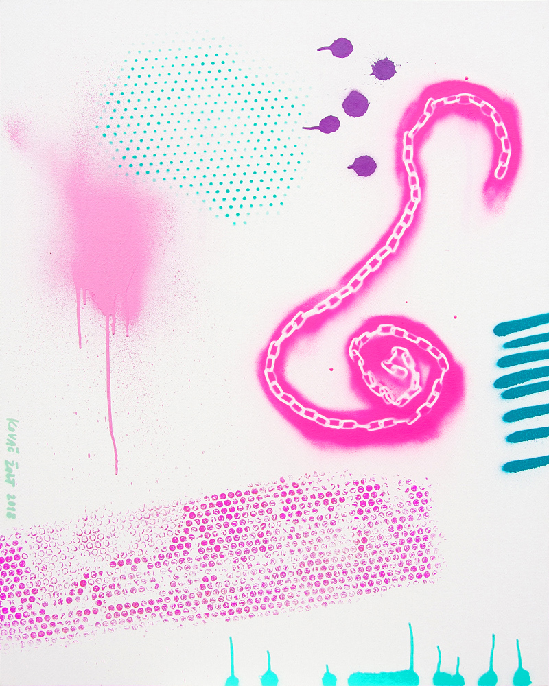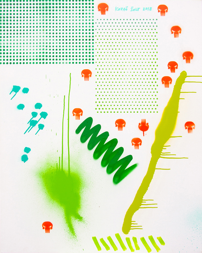 Aproprijacijom redukcionističkih plastičkih elemenata istorijske apstrakcije i minimalizma, kao i njenih protokola viđenih u ritualnim islikavanjima idealno zaravnjenih površina, preglednoj reparticiji bojenih planova i njihovih kontrasta, izolovanju prisustva novih plastičkih egzistencija, kao sublimnih emocionalnih stanja jedinke ili elokventnih oblika nove političke subjektivnosti – autor nastoji da pronikne u analognu strukturu društva i njegovih ekranskih protokola. Redukcionistička slika umetnika je i nastala kao deo ovog svesnog udela i doprinosa društvu „spektakularne vizualizacije“, po savremenim antropolozima, i njegovog neprestanog live streaming ogledanja u oblicima prisnog pre-poznavanja, ali ne i suštinskog poznavanja stvari i odnosa. Sa svakim novim ciklusom Žolta Kovača, obnavlja se neki od jedinačnih aspekata ekranske kulture kroz rukom islikavane all-over-e kojima se repliciraju naličija ove medijatizovane slike svakodnevice i njenih otuđenih društvenih rituala.